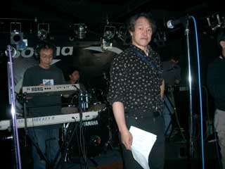 志津Sound StreamでのLive(イベント?)は,そのお題が示すとおり, Sound Streamの白幡店長の「結婚お祝い週間」の初日でした. この日を皮切りに,16次会まであるようです. みなさま,Sound Streamまで足を運んでみてください. そして,おいしい音楽とすばらしいお料理をご堪能ください. (; ̄ー ̄)...ン? なんか逆? さてさて,こういった主旨でしたので,KC & the TITEもいろいろと準備しました. われわれとしても,この佳き日に呼んでいただいたことを覚えていたいし, 白幡店長,新婦Sayakaさん,Sound Streamスタッフのみなさん,そしてお客様にも, KC & the TITEがお祝いしたことを覚えていて欲しいということで, まずは,かわいらしい楽器=オブジェ:ジャンベのミニチュアとココナッツカリンバを用意しました. どこかに飾って置いてくださいね. ![]() それとブーケを用意.ブーケというよりはバスケット入り花束. 鮮度を重要視し,リハ直前に,志津の東武MINEの1階の花屋さんで購入. きれいな花束ができました. ![]() しかし,ここでベーシストPapan,失態! 花束購入に向かっていたKC & the TITEの血に飢えた砲撃手ハナズーカをあおるような発言をし,窮地に! はたして,Papanは今日の演奏を無事終えられるのか? それともハナズーカの餌食になるのか!? ![]() さてさて,今回はリハの前に小ミーティングがあり, 白幡店長から,今回のイベント主旨について改めて説明がありました. バンドさん同士の交流の場ともしたいとのこと. もちろん!今回は終電逃し対策もして臨んでますから!!! というわけで,この小ミーティング後, 忙しくならないうちにと,我々から,楽器オブジェと花束の贈呈. ![]() モンキーマインドユーキューブバンドさんからも, シャンパンが贈呈され,一気にお祝いムードに染まりました. ![]() 早速リハ開始. 順リハで,KCは出演順2番ですから,リハトップ. それにしても,チェックが速い早い! ぽっぺっぱっと終わっていきました.20分マキ. ![]() ![]() さて,KCのリハが終わり,他のバンドさんのリハになりました. 対バンさんについては,本番レポの方で. -------------------------------------------- さて,18:00になりました.開場です. 今回は,バンドのノルマチケットがないということで,ん?お客さんは? と思いましたが,徐々に会場内はにぎわってきました. と,そのなかに,やや年配のご夫婦が・・・ ハナズーカさんが,声をかけてみると・・・ なんと,新婦Sayakaさんのご両親だそうで! いいですねぇ!しかも,演奏を聞いていらっしゃる姿ものりのりでした. 新郎さんの職場を新婦さんのご両親が訪問,しかものりのり! 白幡店長も「サプライズでした」と言っていたということは,抜き打ち!? ご両親様も,おめでとうございます! 今回の客席には,特別なメニューが置いてあります. なになに?サンスト風NAタコライスに和風NA親子ライスにサンスト風NAパスタ. いずれもこの期間限定だそうです. みなさまもご賞味されてみては?もちろんKC & the TITEは演奏後に頂くために, 「演奏前に」注文させていただきました. ![]() 18:30になりました.開演(開宴)です. 白幡店長と,Sayakaさんの入場です.なんともお似合いじゃぁござんせんか!くぅ〜っ! 拍手,歓声の雨あられ.しょっぱなからお祝いムード最高潮です. ![]() そうそう,われわれKC & the TITEは演奏時正装=黒服でお出迎えしました. KC & the TITEがこのような段取りを決めるのはいつも直前. 開宴まであと20分ていうのに,みんなで急いで着替えました.<戦場でした. ![]() 乾杯をした後に,早速1バンド目の演奏です. モンキーマインドユーキューブバンドさん. 基本的にオリジナル楽曲をやられているようです. あっこさんの曲を織り交ぜながら,客を安心させるステージングでした. ギターのTANIFUJIさんは,地元の方で,某地元呉服屋さん専用のBGMを吹き込んだとか. 「5曲目までに必ず眠りに落ちる」と本人がおっしゃっていましたが, William Ackermanもびっくり!? ![]() さて,2バンド目はKC & the TITE リハを終えてから本番に至るまでに,構成が校正され更正されたのは・・・あれ?どこだっけ!? いえいえ,そんな直前の申し送りもきちんとやるでございますよ! ![]() Openingは前回のサンストライブに続いて,Soul Fingerです. 2回目の演奏にしてすでに定番化.フロントのダンスもさまになってます. 2曲目はDo you love me?でした.この曲については,Do shitar know?という感じになってしまいしたが そこはご愛嬌.気分を切り替えて,次の出し物へ,あ,違う.演目へ. 3曲目から,『白幡店長結婚おめでとうSpecial』です. あま〜いUsupyのSax Soloからはじまりました.とろけちゃうってなもんで. その導入から,When a man loves woman. お祝いムード全開で,お二人に向けて,お祝いビーム! 途中,KCさんのMCもさしはさみながら,進行していきます. 何度かテーマを反復して,Endingへ. 最後のBbをシロタマ クレッシェンドで弾き終えた後・・・ みんなでポケットに忍ばせておいたクラッカーをぱぁ〜〜〜ん! Wedding Marchが始まり,「おめでとう〜〜〜」 やさしい光に包まれた,教会での祝福のワンシーンのような光景. ところが,Wedding Marchが終わろうとしているそこで! 我が,Horn