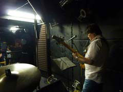 た。 12時過ぎ、各メンバーから毎度の「出発しました」メールが飛び交い始めました。 Akkey「今起きました(滝汗)ひとまず犬の散歩にでかけます。」 え??(^_^;) Maman「年甲斐もなく、ダッシュしました。エスカレーターでころげそうに(*_*)」 おお!!( ̄□ ̄;) Papan「電車の冷房でお腹がキリキリ痛みちう〜っ!!(>_<)」 (* ̄m ̄)プッ ![]() ![]() ![]() ![]() 店内は省エネの為、開店まではエアコン停止。 ムーっとする暑さの中、バラバラと出演者が集合して来ました。 バンド顔合わせ挨拶の後、リハーサルスタート。 ![]() ![]() ![]() ![]() ステージは奥行き方向のスペースがアップした事もあって、メンバー立ち位置もそれを考慮して 1列目 KC、USUPY、MAMAN、hit-me! 2列目 tada-chin、kussy 3列目 PAPAN、akkey、Mercy 3列シフトです。 こうなるとステージモニターの位置、各楽器の生音、、、 演奏者的には非常に苦労するところ・・・。 ![]() ![]() ![]() ![]() 2人のギタリストは前後に並び、おのずとアンプも前後に置かれます。 2人のキーボーディストは横一列に並び、テクノな感じ(死語)。 ![]() ![]() ![]() チェック用の定番曲で音出し開始・・・ Mersy「お前(hit-me!)の音がデカくて自分の音が聞こえないっ!」 と早速一発。「しょうがねーなー」と音量下げるフリをして・・・と(`∀´)Ψ そしてPAさんがアンプ背面に遮音できるように布を被せます。 『効かねーよ!』と内心思ってる私(悪!) ![]() ![]() key兼後列G用のモニターの向きを(自分の方に)変えよう!とMersy2発目。 ハイハイ・・・ ![]() ![]() いつもいつもリハでベースの音がデカいと、、、誰からも言われるPAPAN。 今回のステージではベースアンプと私の位置は対角線上の角と角。 結構聞こえにくいのです。ベースのグルーヴを大切にする私としましては(嘘つけ!)、 丁重にお願いしないといけません。 「ベースの音、も少しあげて貰ってもいいですか?」 「えーーーーーーー!!」メンバー一同大ブーイング。 ちょっと嬉しそうな(笑)PAPANでしたが、PAさんからは却下! でもモニターから少し返してもらう事で決着。 ![]() ![]() ![]() リハ後はお向かいのロッテリアで小休止。 今回はkussy氏のお子さん3名も参加、usupyとすっかりお友達になってました(羨) AkkeyはバガデカチキBOX注文するも、予想外のボリューム。 根性で完食なさいました。後どーなっても知ーらないっ。 ![]() ![]() ![]() お店は前回とは変わり、撮影(+録音)禁止! オフィシャルカメラマンのP夫妻を擁する我々としてはそこをクリアにするため、 スタッフ証を彼らに授けると、、、予想外の喜びよう!! そ、そんなに嬉しいのか〜(^^;)、愛されてますねぇ、いつもありがとう。 ![]() ![]() ![]() ![]() 写真撮影は自バンドのみ許可の為、対バンさんの写真は御座いません。あしからずご了承ください。 自主制作CDがあるバンドさんはそのジャケを載せます。 ![]()