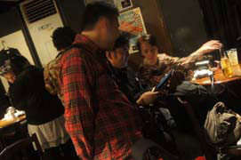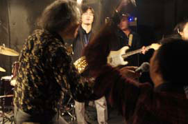 ![]() Photo by Pee & Par子 そんな感じでまったりした開場時間を過ごしてると、会場はお客さんで益々一杯になり、いよいよ開演時刻間近…しかし、ボーン さんがPA席にいません!? そう言えば、外の案内板には開演19:30と書いてあったらしいとの噂も有り、少し焦りながら、メンバー全員ステージに上 がって準備始めます。 そして、定刻…ボーンさんもPA席に戻って来ており、メンバーの準備も万端です…BGMも止まったようで、さて行くか、と気 持ちが↑↑になった瞬間、またBGMが…Σ( ̄▽ ̄; Photo