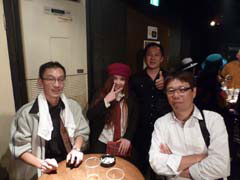 by Pee & Par子ステージからはける時に、三文芝居さんのお客さん(かな?)に、久し振りにベースらしいベースを聴かせて貰った、サイコー だった、と言われて、気恥ずかしいやら嬉しいやら…(〃▽〃) ![]() Photo by Pee & Par子 そして、機材を片付け、渇きを癒す為にコロナを一杯…ダディさんはもう何も言わなくても自動的にコロナを出してくれます… ダースで買ったから遠慮せずに(買って)飲め、とまで…笑 でも、ダディさんちょっと可愛いかったですね…御大が自分より年上だと言う事が判り、少し大人しくなってました… ( ̄▽ ̄;) ![]() ![]() さて、次のバンドさんは昭和歌謡の3ピースバンド”三文芝居”さん。 Tadachinの食い付きが半端なかった(?)ですが、その理由は…内緒です。(^^; ちなみに、ベースボーカルの方が今回のLiveを最後に脱退されるそうで、なんとこのメンバーでの演奏はこの夜が最後。 恋のフーガ等の恋シリーズ、圭子の夢は夜ひらく、命短し恋せよ乙女、サントワマミー…越路吹雪から水原弘まで何とも幅広い曲 を3ピースのアレンジで見事に聴かせてくれてました。 客席はもう満杯で身動き取れないぐらいの状況…確かにお客さんを呼べるだけの実力派バンドだってのも判ります。 KC & The TITEも見習わないといけないですね…って、そんなことは随分昔から自覚してるんですけどねぇ…沈 個人的には、何故ベースボーカルの人は必ずSGを持つんだろう?、とずーっと考えてました…で、三文芝居さんに質問をぶつけ たところ、多分ショートスケールだからでしょうねぇ、と割りとあっさりした回答を貰いました…笑 ![]() ![]() そして、一気にお客さんが引いて、本日最後のバンドは”ヒステリックカズバンド”さん。 ちなみに、メンバーさんはみんな三文芝居さんの演奏途中に現れて、色々と準備をしてたようで、KC & The TITEの演奏は全く聴いてなかったみたいです。Σ( ̄□ ̄; このバンドさんの演奏は…ちょっとノーコメントで良いですかね…苦笑 知ってる曲ばかりの演奏でしたが…書き始めるとライブレポには載せれないコメントばかりになりそうなので、ちょっと自重しま す。 ちなみに、私は演奏中に、コロナを一杯買って、トイレに2回行きました…( ̄▽ ̄;) で、全ての演奏も終了し、長かった夜もおしまいに…惜しくも(?)KC & The TITEの動員は9名でした…次回また頑張りましょう…と、頑張ってくれよ、ホントに…(>_<) 上がる前に、ダディさんと次のお話を暫しして、最後にコロナをもう一杯飲まされ、帰ろうとしたら、Hit!meがヒステリッ クカズバンドのVocal yokoさんとおしゃべり中…いやぁ、先輩がいないと飛ばしますなぁ…これもギタリストの性なのかしらん…笑 ![]() 三文芝居さんがさっさかとお客さんと打ち上げに向かわれたので、ハコの中にはヒステリックカズバンドさんの関係者ばかり…と 言う事で、日曜日の夜でもあるので、明日を考えて、我々も早々に上がり…お母さんが心配なのでと早退した御大を除くメンバー とPee&Par子で外に向かいます…が、Hit!meがいないっ!? yokoさんとの話が長引いてるのかと思いきや、いつものように荷物を手に満杯に持って階段を上がって来ます…そして、これ またいつものように路上で荷造りを…!! まあ、そんな大袈裟に言わなくても、いつもの光景…ですけどね。 ![]() 帰りは、車組と店前で別れ、新橋駅では横浜方面、北東方面、西方面に別れて解散…最近は無事に帰りましたメールが飛んで来な い方もいるので、多少心配もしますが、まあ皆さん大人ですからね…多分...笑 ふぅ〜、実はまだまだネタ満載のはずなんですが、私の体力も記憶も尽きて来たので(!?)今回のライブレポはこの辺で失礼さ せて頂きます。 最後に、毎度写真撮影してくれてますPee&Par子、そして毎回来て頂いてる方々に、今回久し振りor初めて来てくださっ た皆様、休日日曜日の夜にも関わらず、お越し頂きましてありがとうございました!! 次回のLive予定はまだ調整中ですが、これからもKC & The TITEを宜しくお願いします!! (注)本ライブレポは 11/5時点の情報に基づいて執筆されており、文中に”年内最後のLive”とありますが、レポ原完了後に 12/8(土) 7th Avenue Liveが決定しています!! (記:Papan) * ALL LIVE PHOTO by Pee & Par子 , Thank you ! ! |