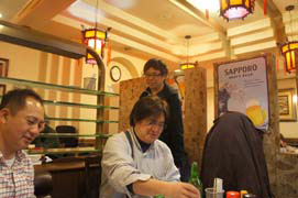Photo by Pee & Par子 ![]() Photo by Pee & Par子 中ではどんな会話がされていたのかといえば・・・ 「オトーサン目立ってたよ!」「どの辺が?」「・・・ジー・・・」恐らく視線は上の方だったと思います。 そして、オトーサンの顔には一筋の光が。きっと嬉し涙だったのだろうと信じたいのですが、それが滝汗だったのか、それともオ デコの手入れの成果ででしかなかったのかは誰も知る由もなし。 しっかし、子供たちの成長は早いもんですね、うんうん。 ![]() Photo by Pee & Par子 Photo by Pee & Par子ほかのメンバーも、お客さんたちと挨拶が絶えません。 会社が別になってしまった元同僚、昔KCさんと一緒に仕事してた人たち、現在やむを得ずKC休職中のKyon2と・・・挨拶 し始めたらきりがない.限られた時間の中で、挨拶しながら片づけを進めます。 ふとPeeが「気づいてました?」と指さすB-PASS・・・ ”12.12.-7 KC & The TITE”となっているではありませんか! いやいや最後の最後に気付きましたよ。 ![]() ![]() 会場を後にして打ち上げの場所選びというわけですが、ここは天下の横浜中華街。 もちろん中華街に向かいます。最近ここでも食べ放題のお店が多いこともあって、我々も珍味園で食べ放題に。 ![]() ![]() ![]() ![]() ![]() マーボー、ピータン、北京ダックと定番料理が次々と堪能していきます。 場所柄、みんな電車で集合したもんですからお酒はOK!昼間から幸せな気分です。 Kussyのお子さんたちもめちゃくちゃ楽しそう! ![]() ![]() ![]() ![]() ![]() 食べ放題もいいけど、結局最後に注文したカニみそシューマイ(4つ入り)は、Akkey一人で片づけたというありさまでし た。 ![]() ![]() ![]() ![]() ![]() ![]() おなかも満たされアルコールもたらふく摂取したところで、そろそろ帰途にといっても帰り道も誘惑だらけ。 なんとPapanは、お店を出た後にフカヒレ肉まんを喰らう!やはり「リズム体」は膨張方向なのか!? いやいや、「なぜ食べ放題の所で頼まない(ー ー;)」との突っ込みに汁がとまらないPapanなのでした・・・ ![]() ![]() 一方、tadachinの方は大学同期と中華街。当時から裏道のお店をよく知っていた友人のセレクトでお店イン。 紹興酒も何杯お代わりしたやら、ベロンベロン。 っていうか7時になっているのに気がつきませんでした(爆)。 こうして横浜の夜は更けていく・・・ さて改めまして、今回来てくれたお客様、残念ながら来れなかったお客様、 また横浜でライブを計画したいと思っています。そのときには是非足を運んでください。お待ちしています! さすがに年内はこれでライブ納めになると思います。また来年変わらずに精力的に活動していきたいと思っています。 どうぞよろしく!それではよいお年を!? (記:tadachin) * ALL LIVE PHOTO by Pee & Par子 , Thank you ! ! |